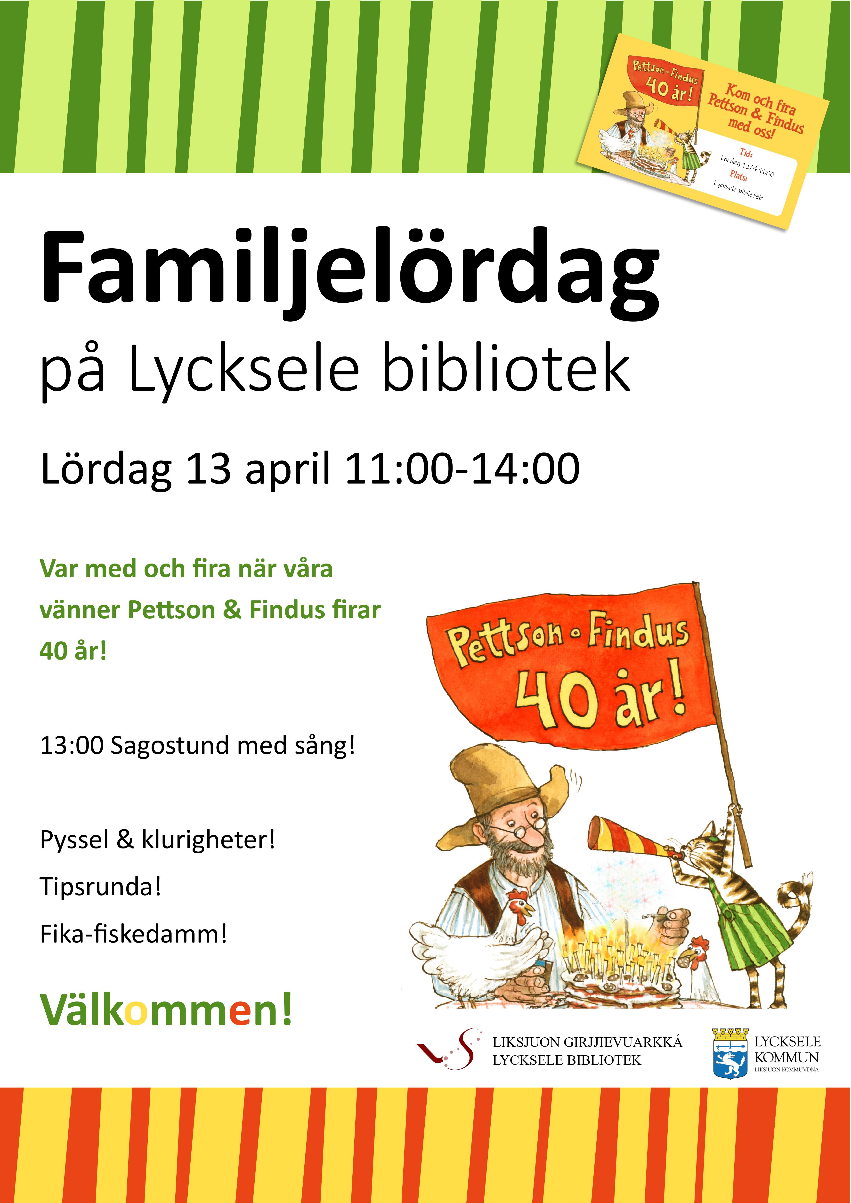 Välkomna på familjelördag med Pettsson och Findus!