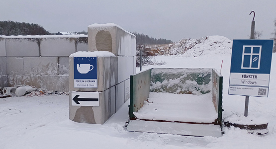 Porslin och keramik hittar ni numera längre in på området, intill trädgårdsavfallet. Precis bredvid finns nu också en separat container för fönster utan karm samt dörrar med glas.
