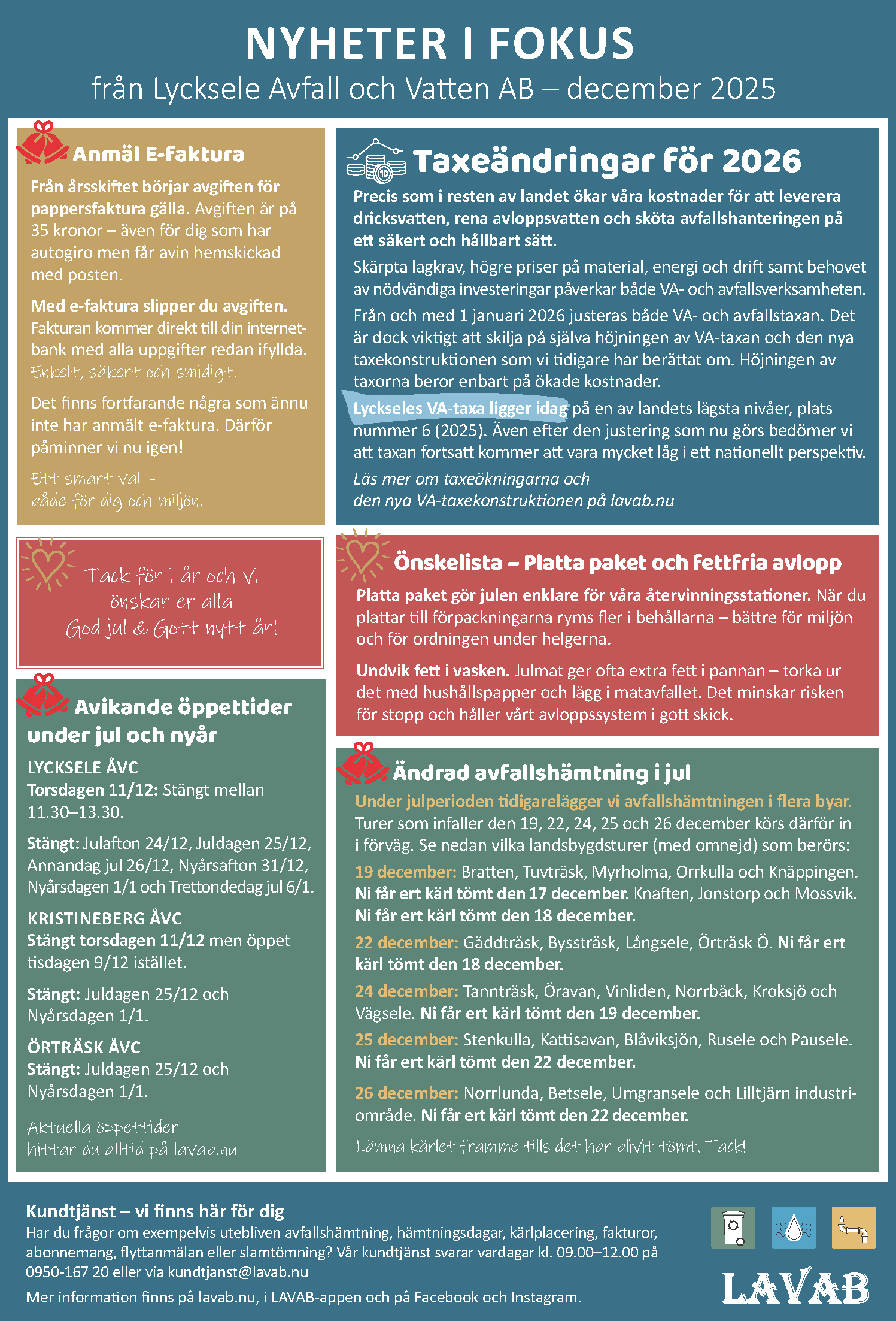 På den här sidan publicerar vi den information som vi annonserar som Nyheter & Information i Lyckselebladet. Vi delar viktiga uppdateringar som kan vara relevanta för dig.